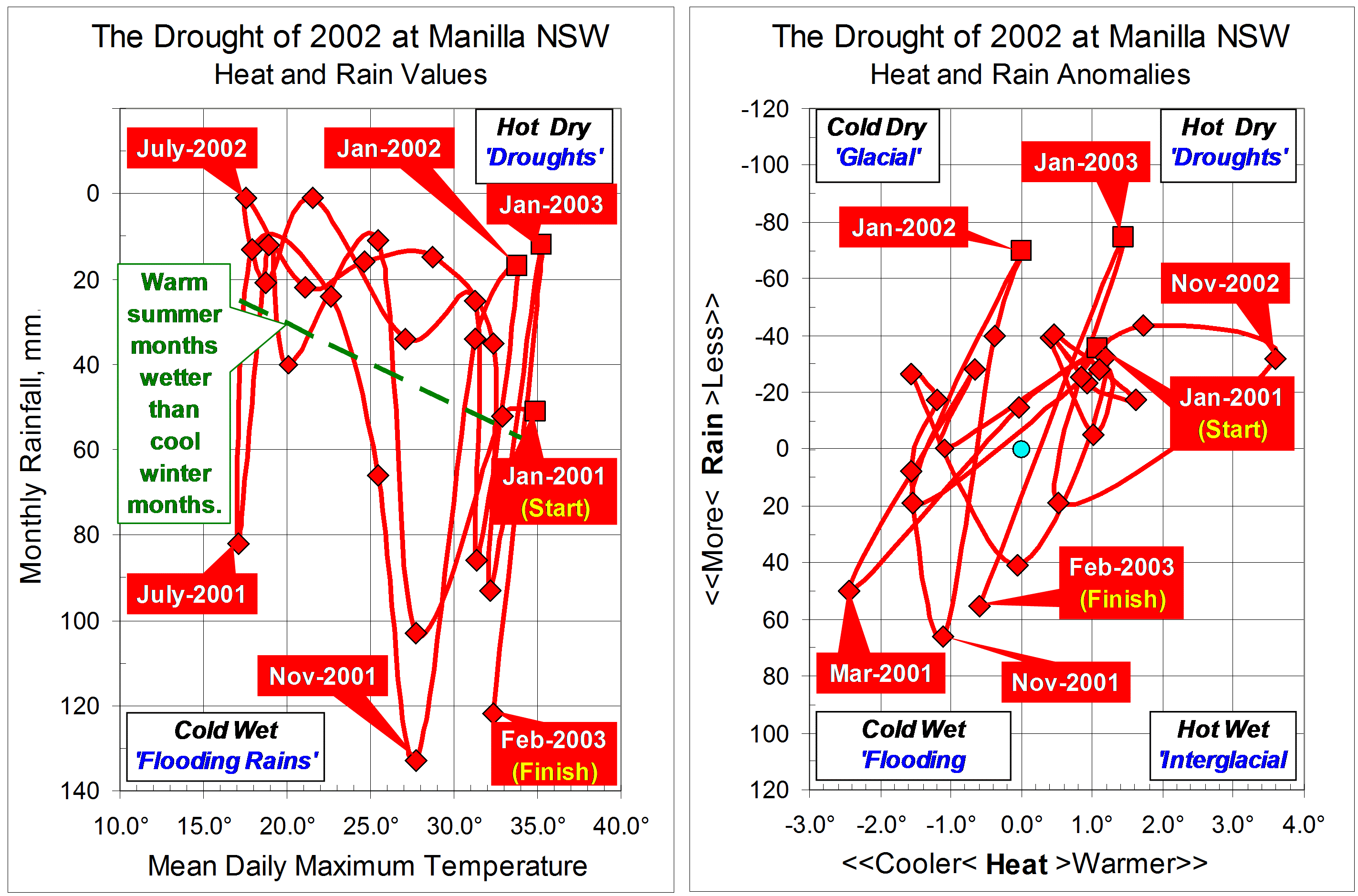 2002DroughtUnsmoothed Published June 16, 2014 at 2846 × 1879 in Profile of an Extreme Drought « Previous A parametric plots of actual values and anomalies of rainfall vs temperature failing to show the course of the 2002 extreme drought at Manilla NSW.