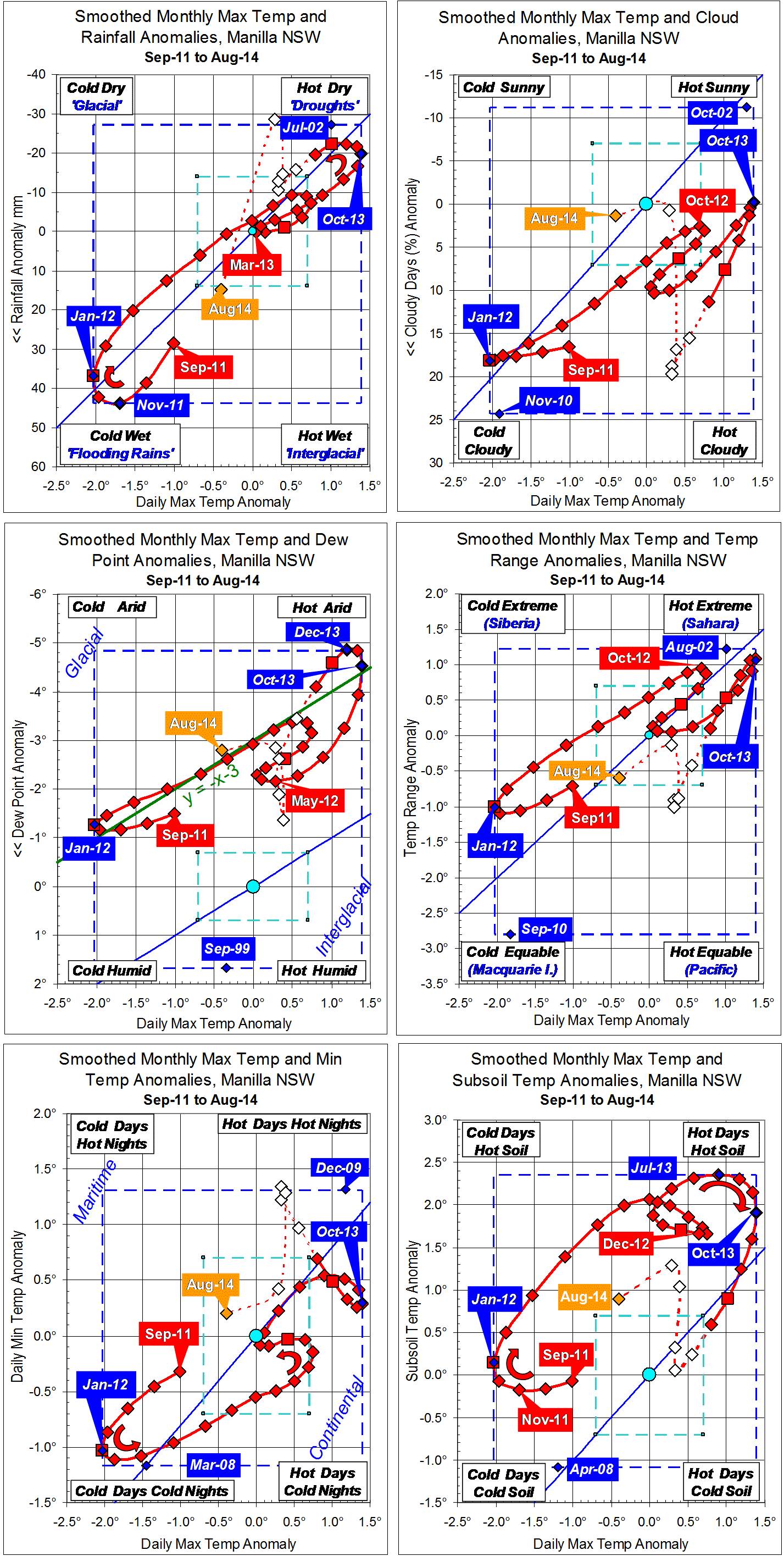 Blue diamonds and the dashed blue rectangle show the extreme values in the fully smoothed data record since September 1999.