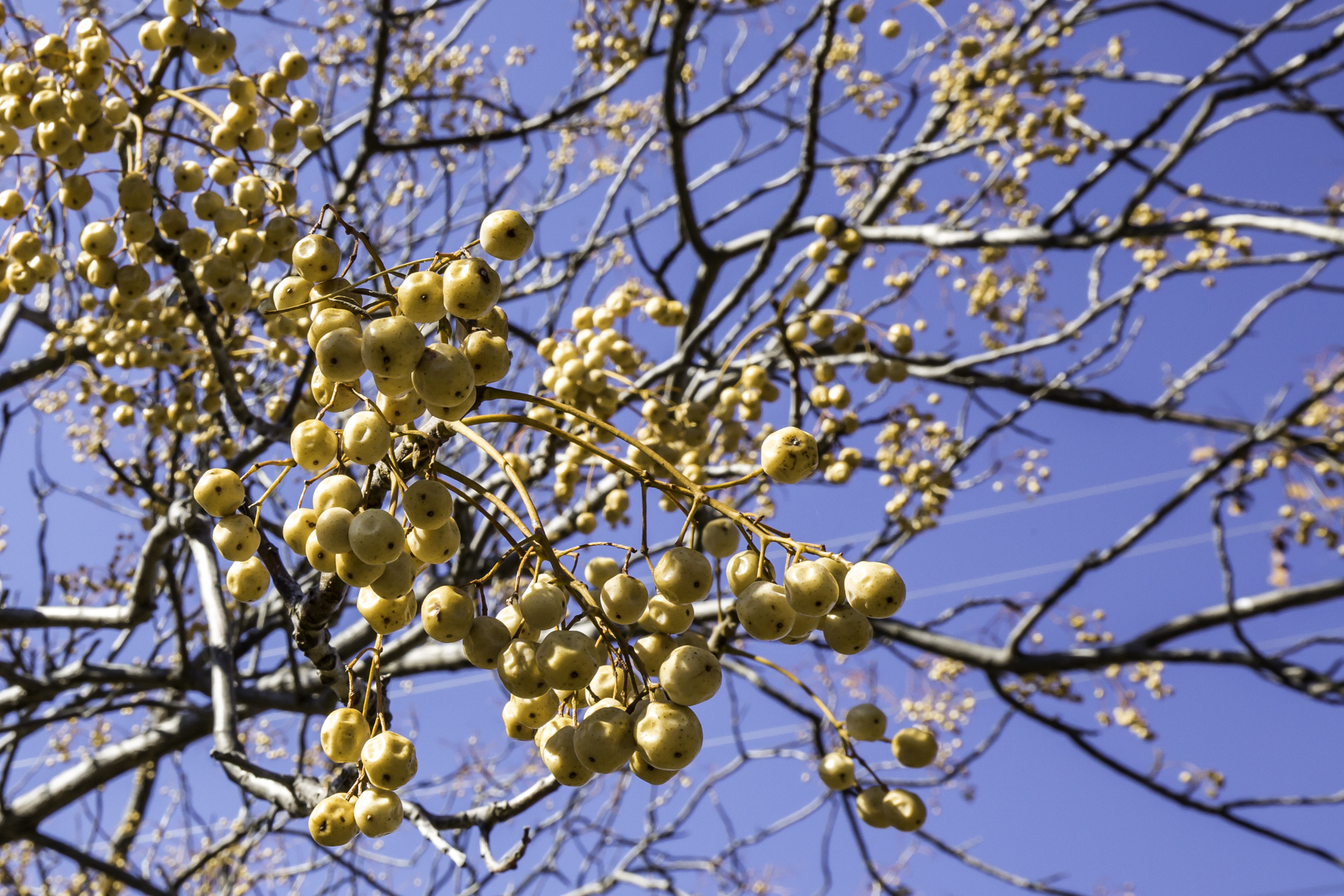 Published September 7, 2014 at 2048 × 1365 in Winter 2014 normal Next » Chinaberries in winter Chinaberries on a White Cedar (Melia azedarach). The green leaves seen in the photo taken in May have gone for the winter. The White Cedar is one of a very few deciduous native Australian trees.