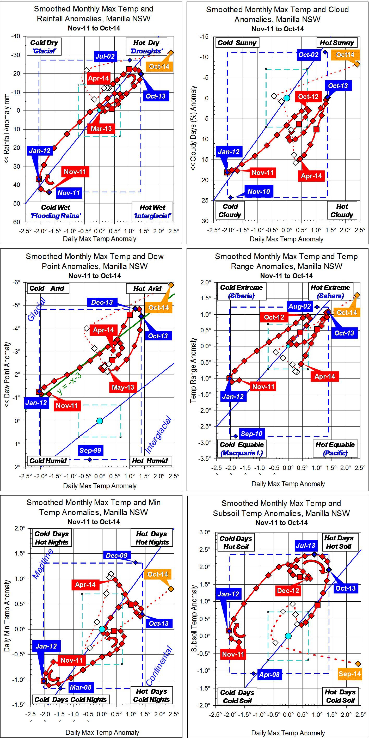 Blue diamonds and the dashed blue rectangle show the extreme values in the fully smoothed data record since September 1999.