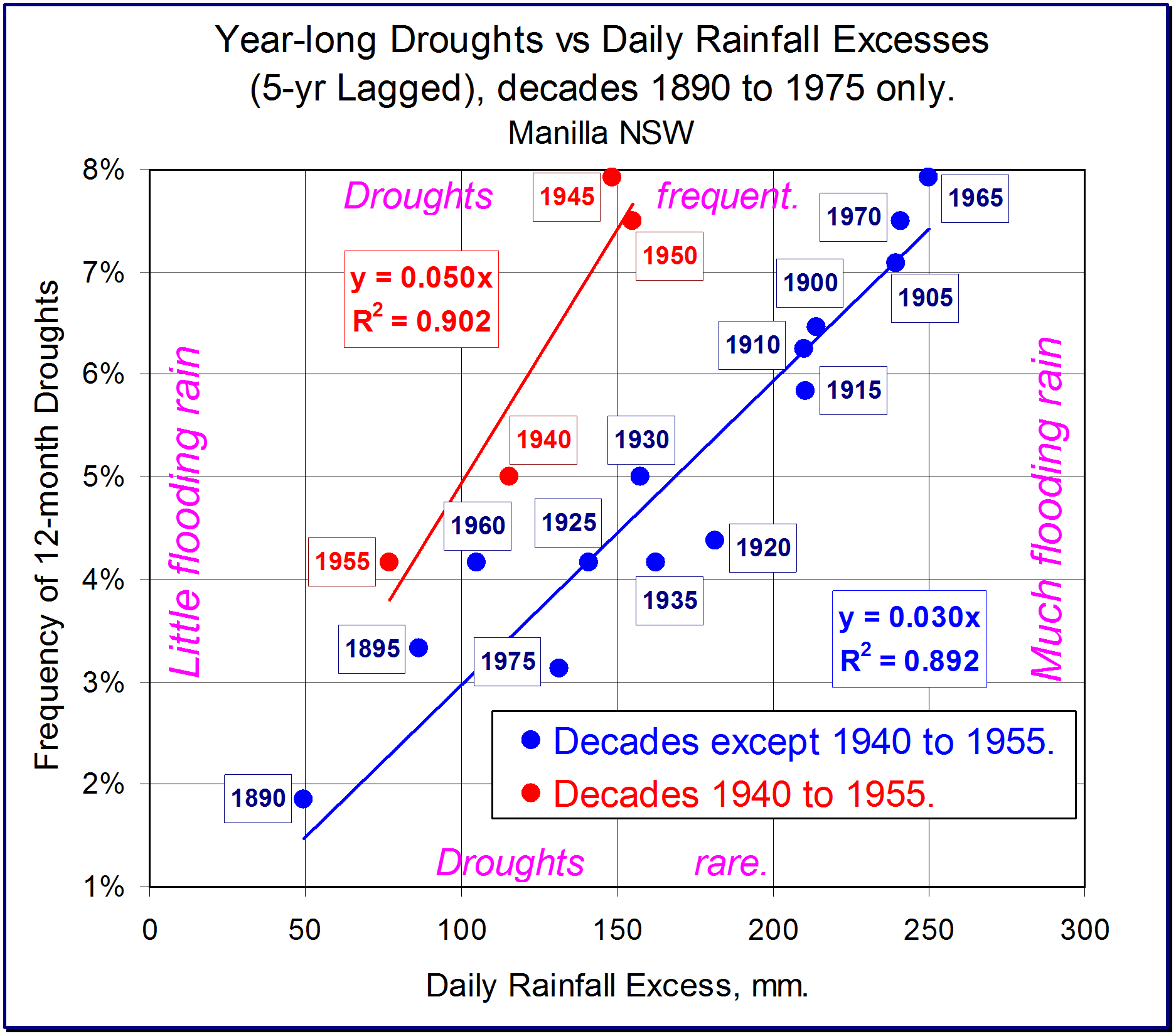 Published May 26, 2015 at 1874 × 1650 in More Droughts After Heavier Rains II. Next » Scatter-plot of droughts versus flooding rains (lagged) 1890 to 1975, Manilla, NSW