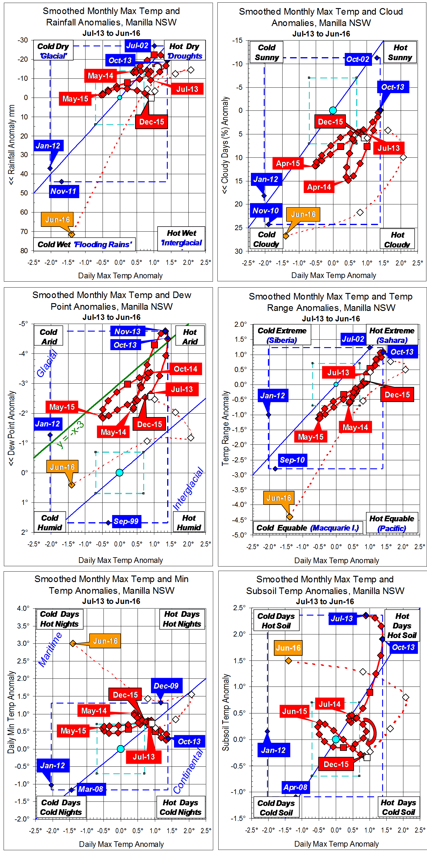 Blue diamonds and the dashed blue rectangle show the extreme values in the fully smoothed data record since September 1999.