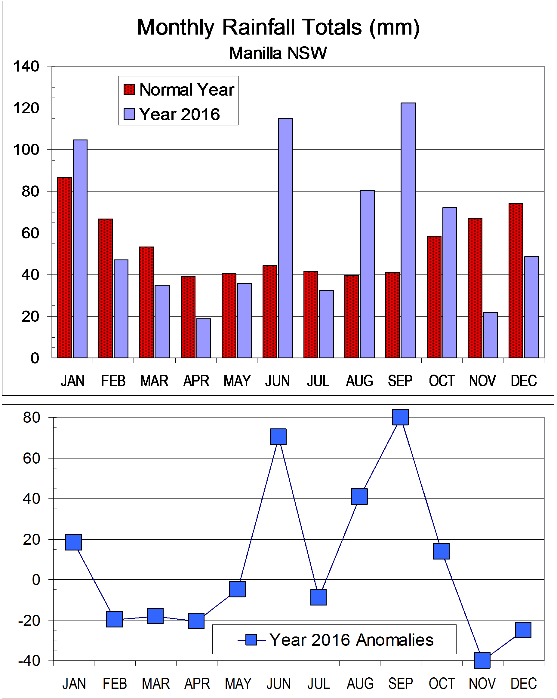 Published January 13, 2017 at 1852 × 2325 in Seasons were strange in 2016 « Previous Next » Graph showing how monthly rainfall totals in 2016 differed from normal.