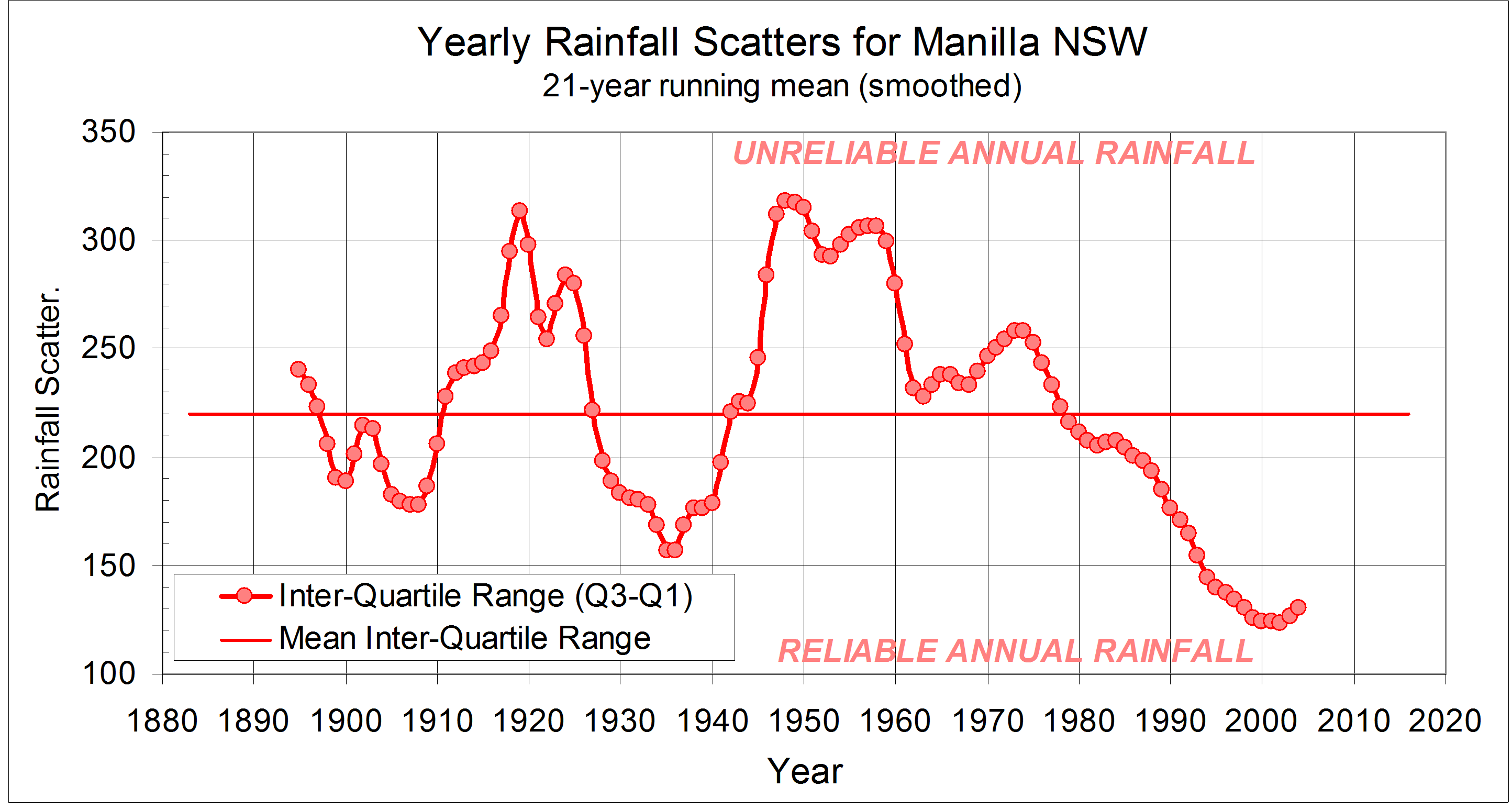 Published February 26, 2017 at 2888 × 1545 in Manilla’s Yearly Rainfall History « Previous Record of Manilla yearly rainfall scatters, using a 21-year window.