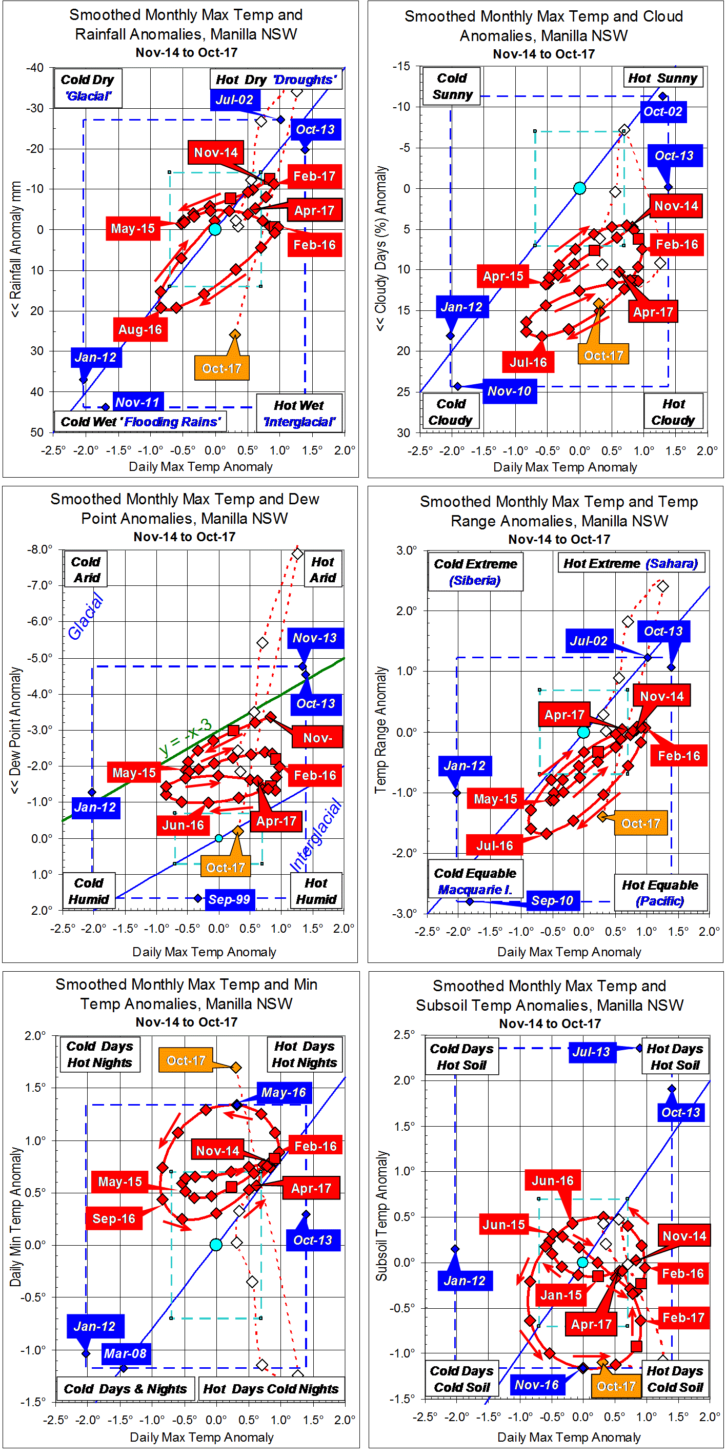 Blue diamonds and the dashed blue rectangle show the extreme values in the fully smoothed data record since September 1999.