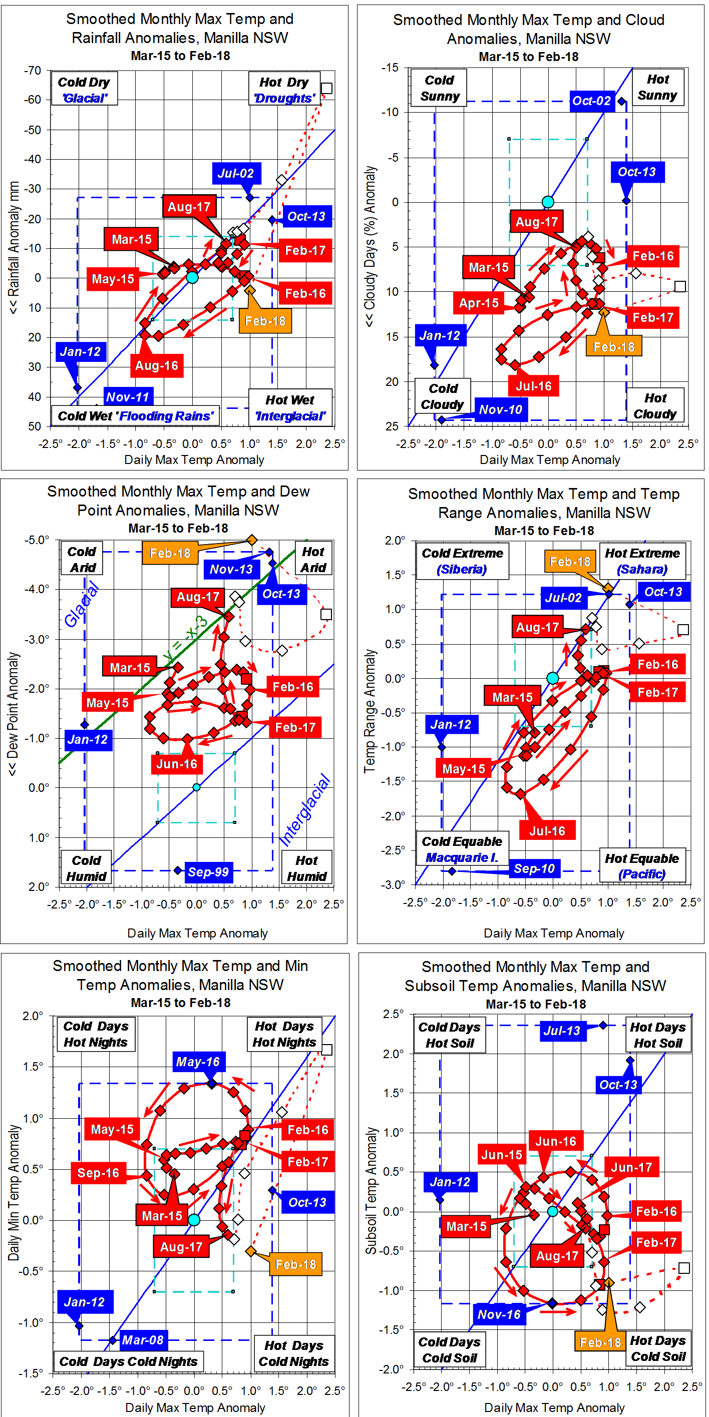 Blue diamonds and the dashed blue rectangle show the extreme values in the fully smoothed data record since September 1999.