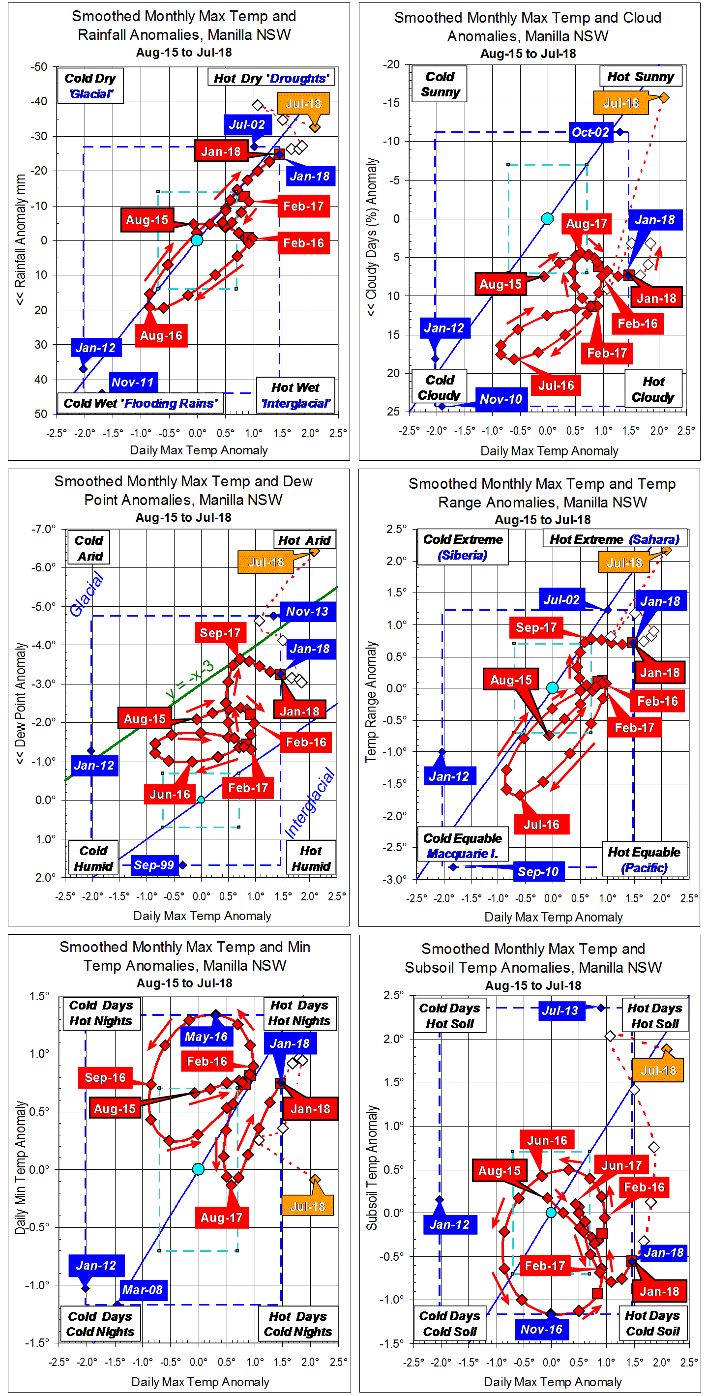 Blue diamonds and the dashed blue rectangle show the extreme values in the fully smoothed data record since September 1999.