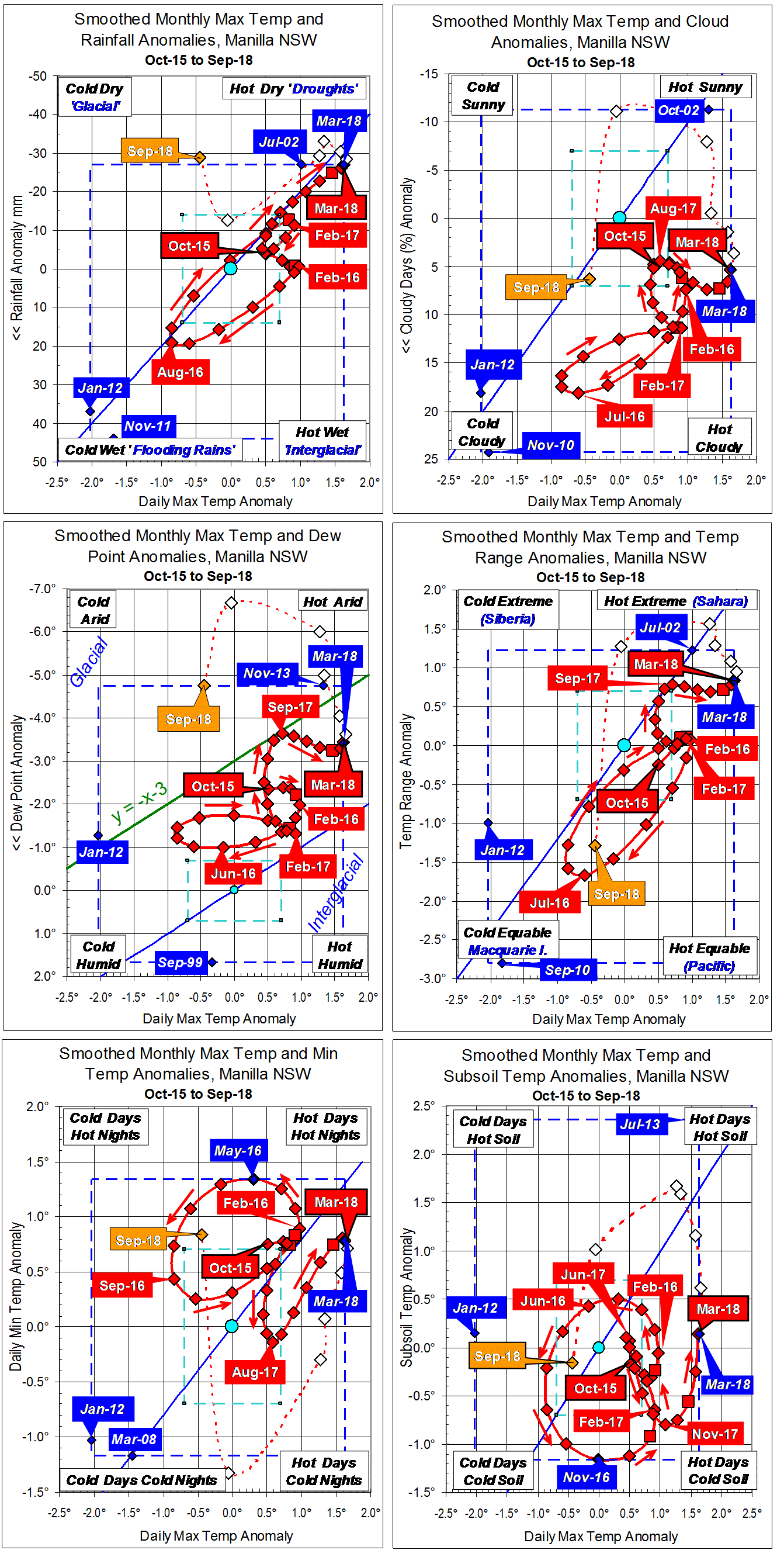 Blue diamonds and the dashed blue rectangle show the extreme values in the fully smoothed data record since September 1999.