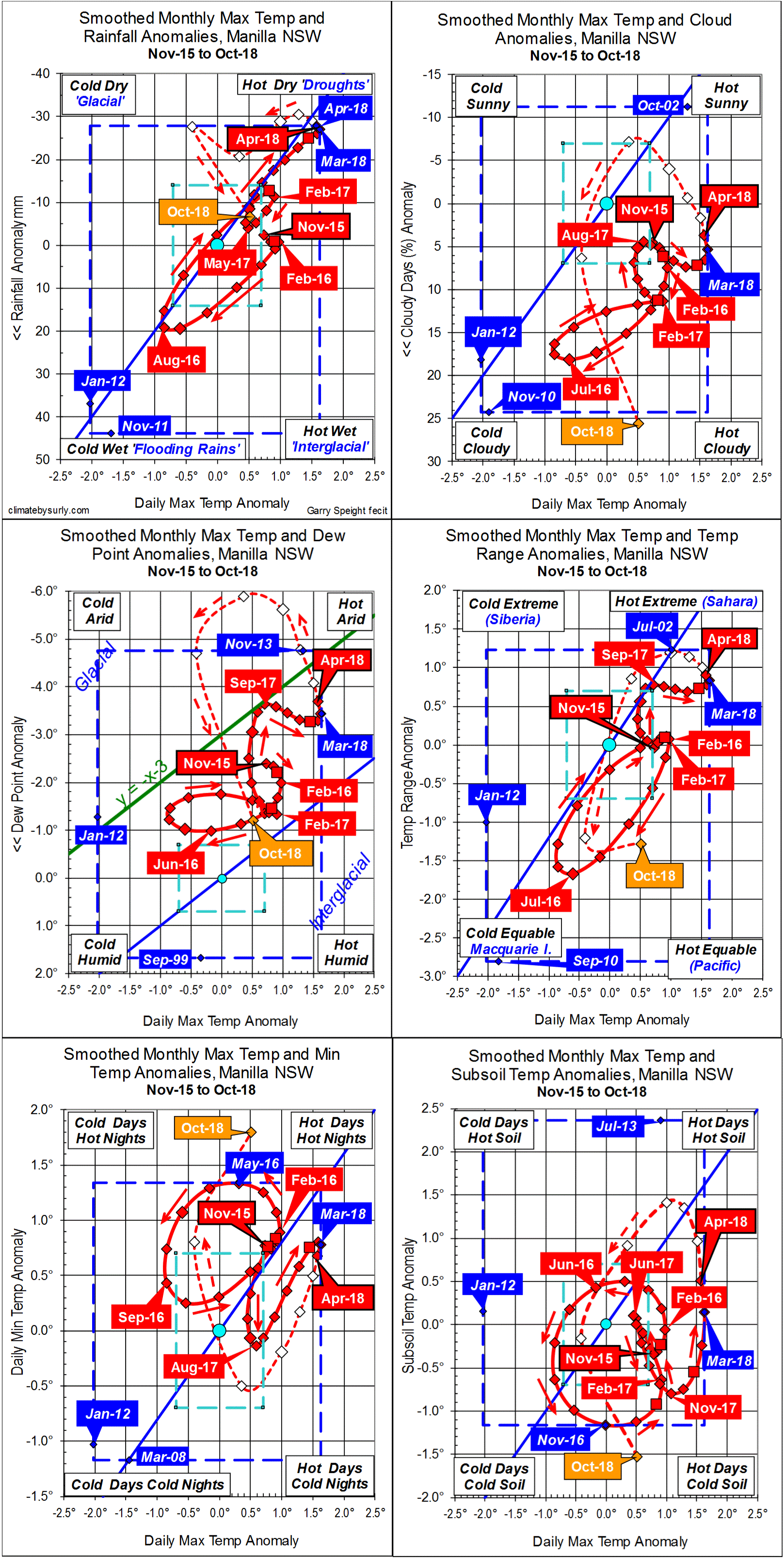 Blue diamonds and the dashed blue rectangle show the extreme values in the fully smoothed data record since September 1999.