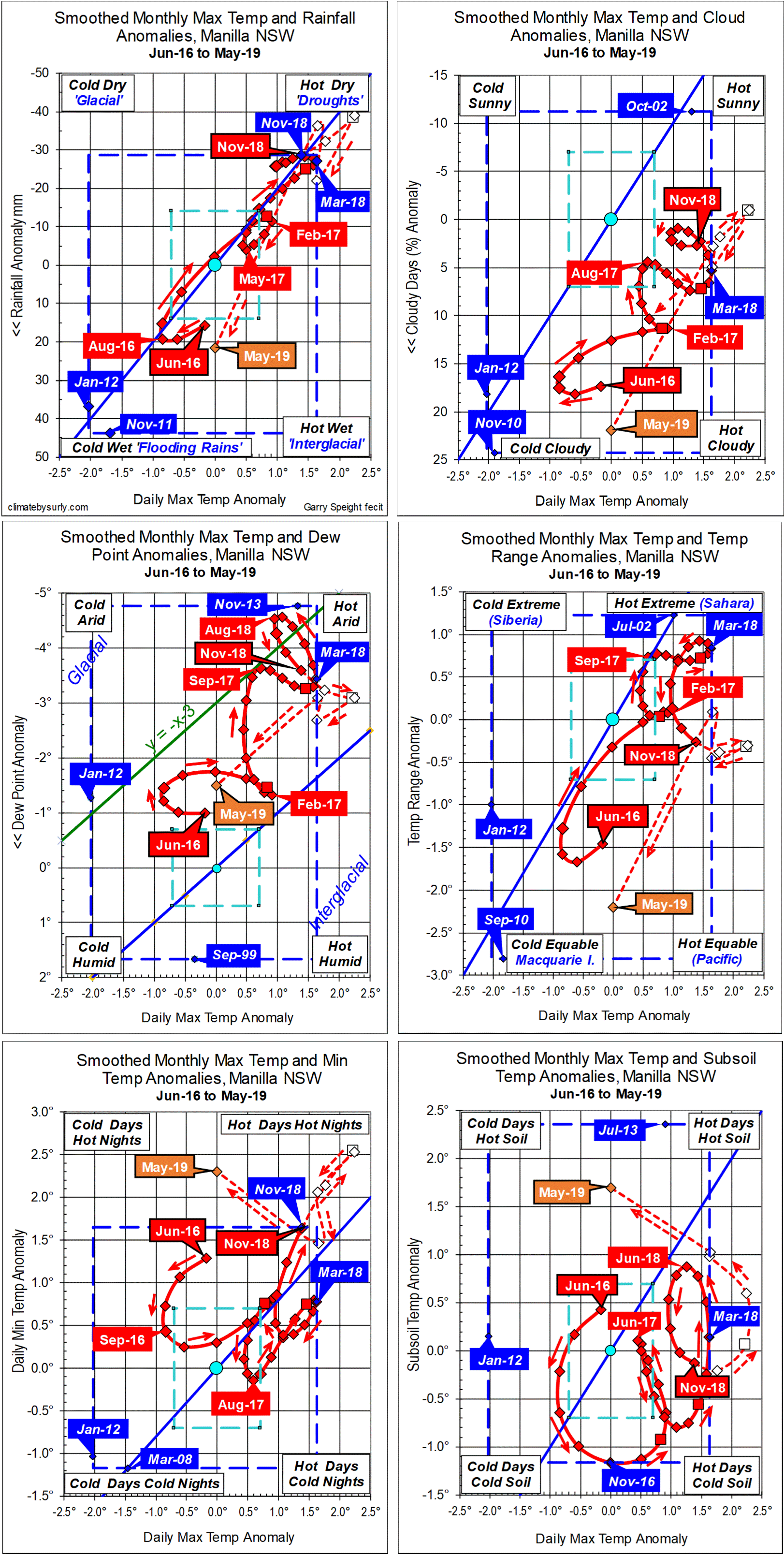 Blue diamonds and the dashed blue rectangle show the extreme values in the fully smoothed data record since September 1999.