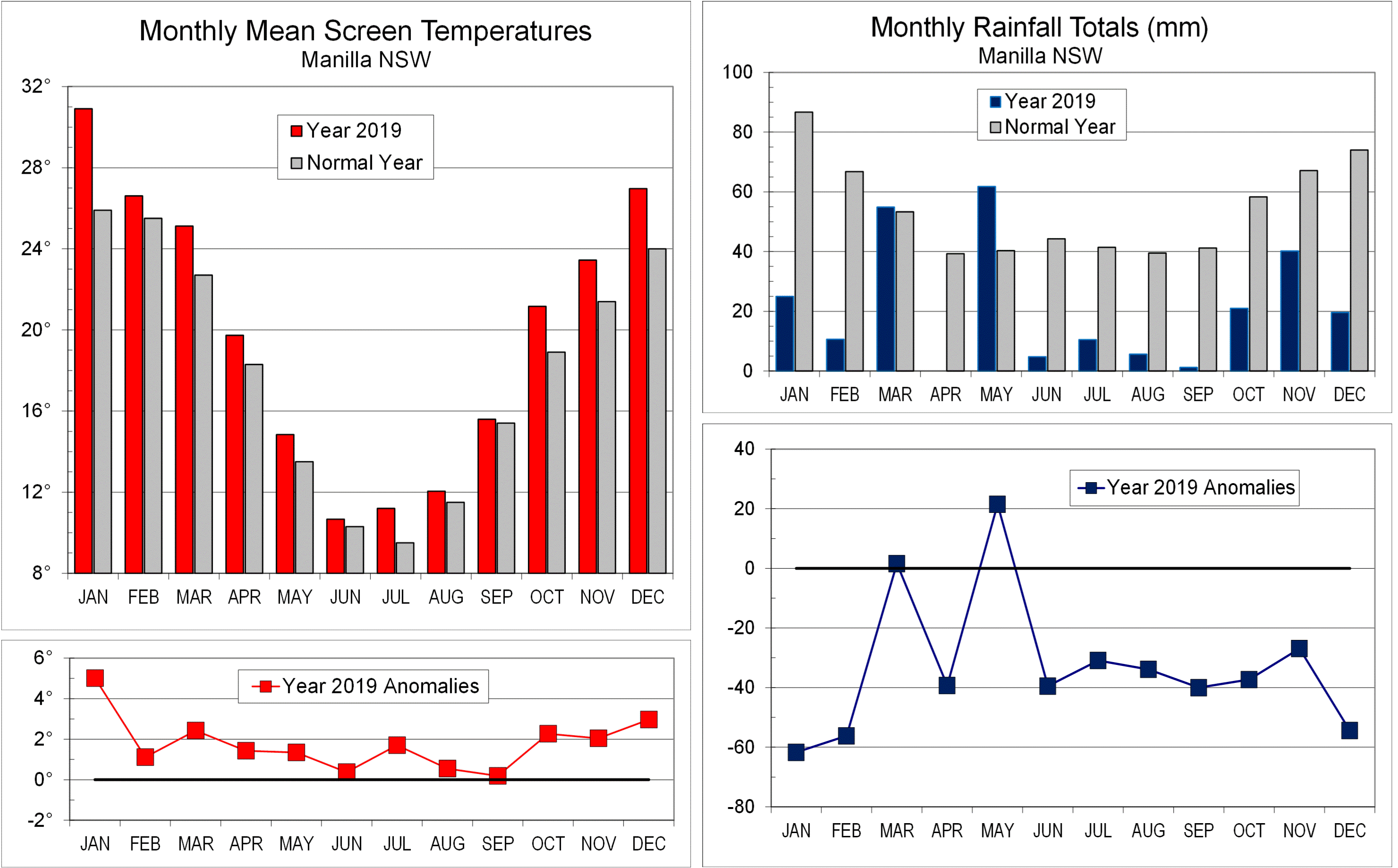 Published January 28, 2020 at 2960 × 1838 in 2019 Climate by months Next » Monthly values of temperature and rainfall and their anomalies for the year 2019.