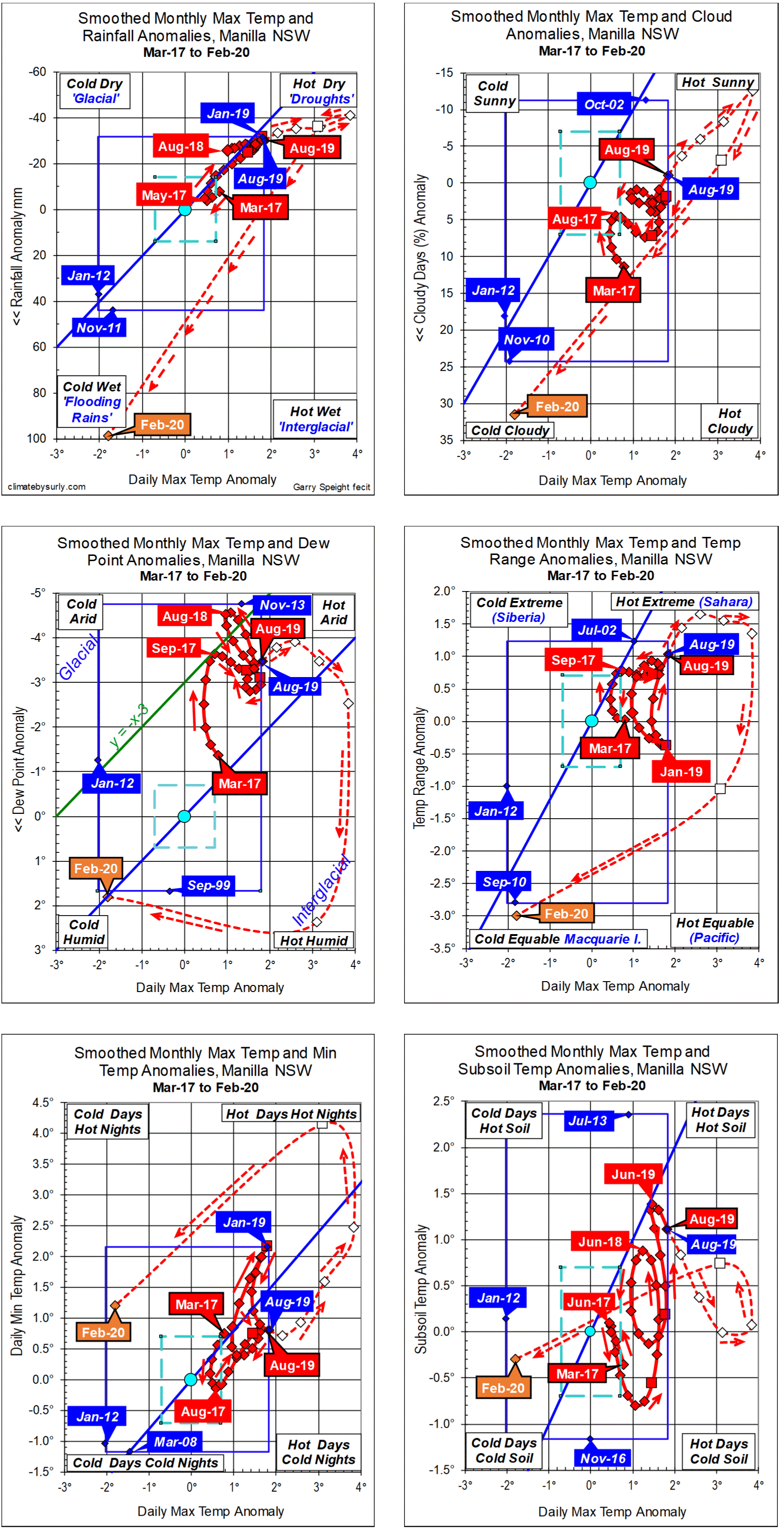 Blue diamonds and the dashed blue rectangle show the extreme values in the fully smoothed data record since September 1999.