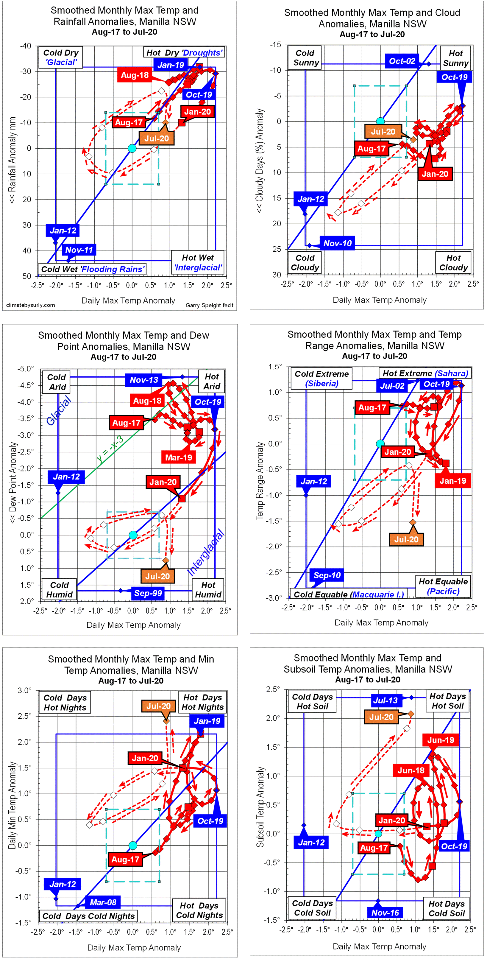Blue diamonds and the dashed blue rectangle show the extreme values in the fully smoothed data record since September 1999.