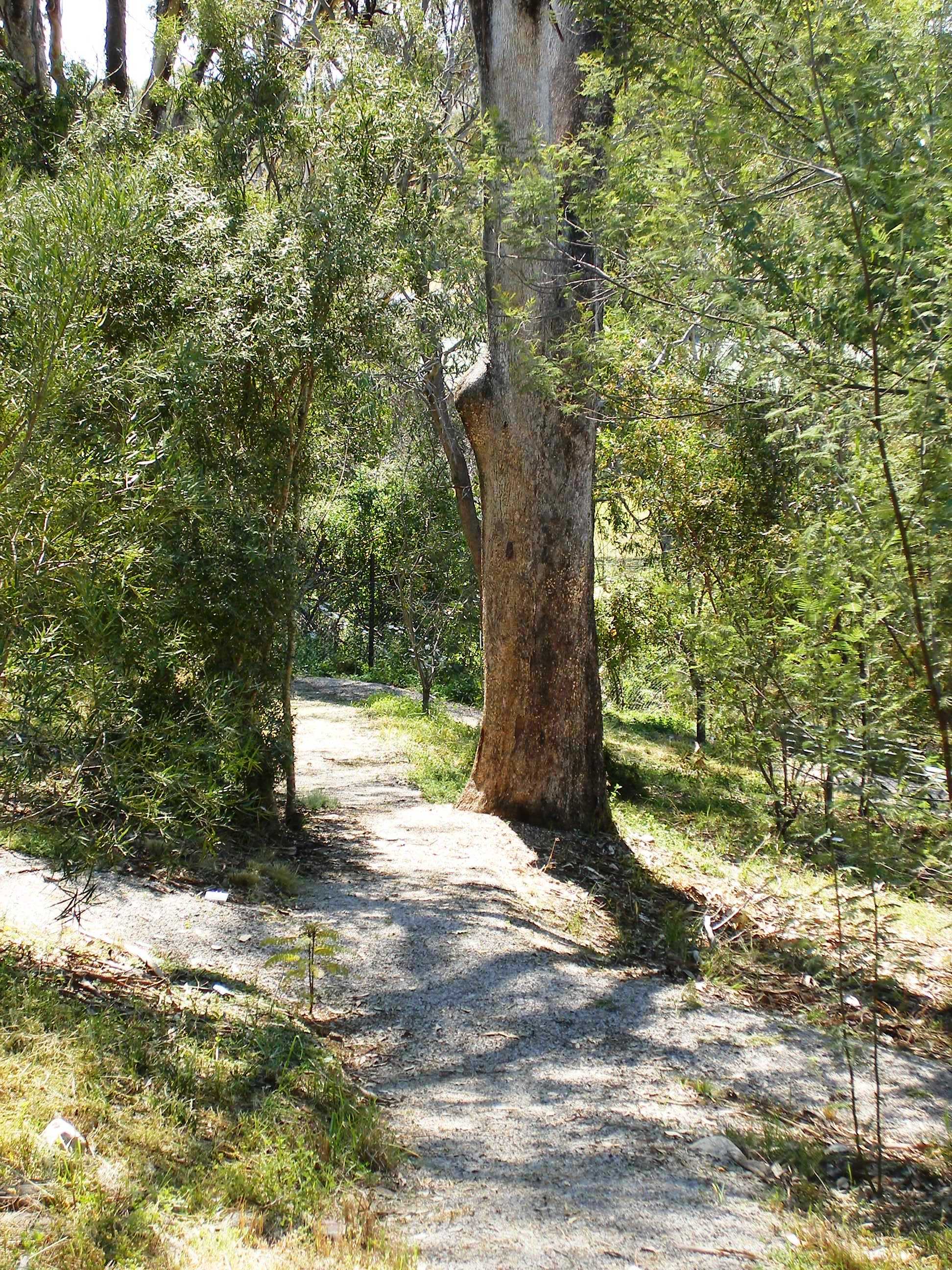Published September 16, 2016 at 1944 × 2592 In the garden A gravel path passes between a White Box tree and Native Olives, with Deane’s Wattles on the right.