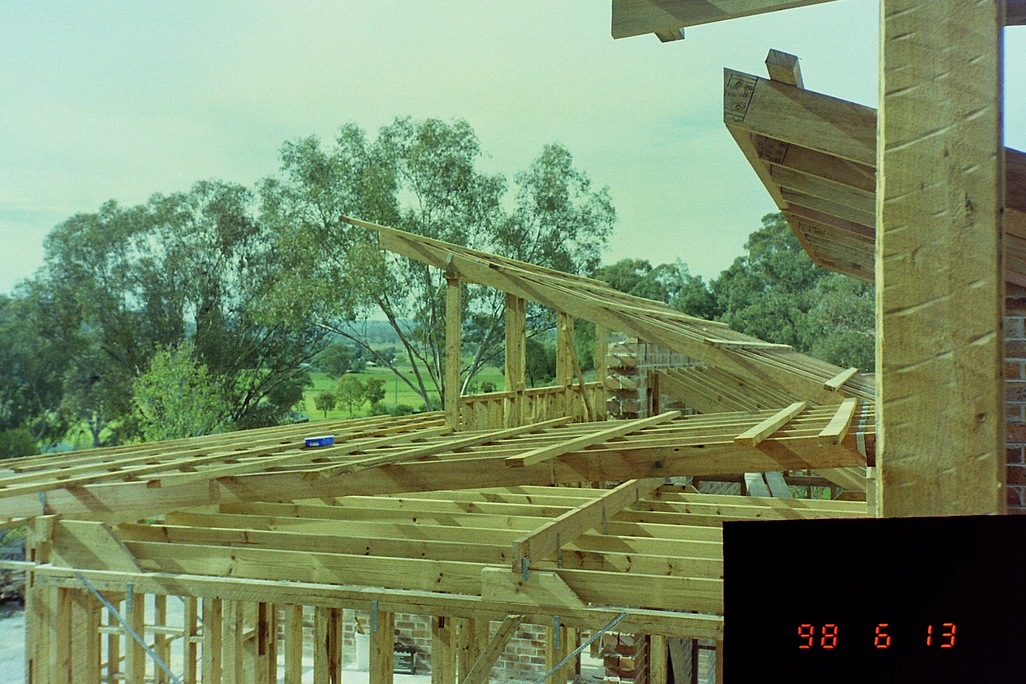 Published June 24, 2015 at 3566 × 2378 in Building Photos: Finishing « Previous Next » Clearstory Roof Frames This shows the rafters of the skillion roofs. The angle of the two north-sloping roofs is 6 degrees, and that of the two south-sloping roofs 18 degrees. Like Loading...