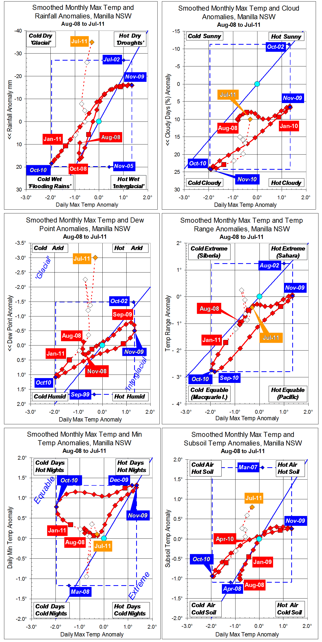 Data. Rainfall data is from Manilla Post Office, courtesy of Phil Pinch. Temperatures, including subsoil at 750 mm, and other data are from 3 Monash Street, Manilla.